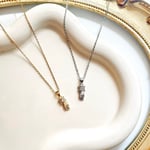 A 17” stainless steel chain with a 2” chain extender, decorated with a gold plated/silver plated cubic zirconia hand pendant.