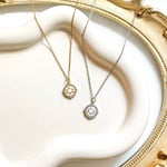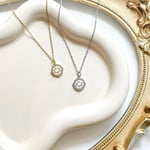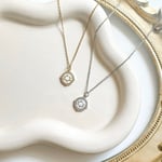A 17” stainless steel chain with a 2” chain extender, decorated with a gold plated/silver plated cubic zirconia circular antler pendant.